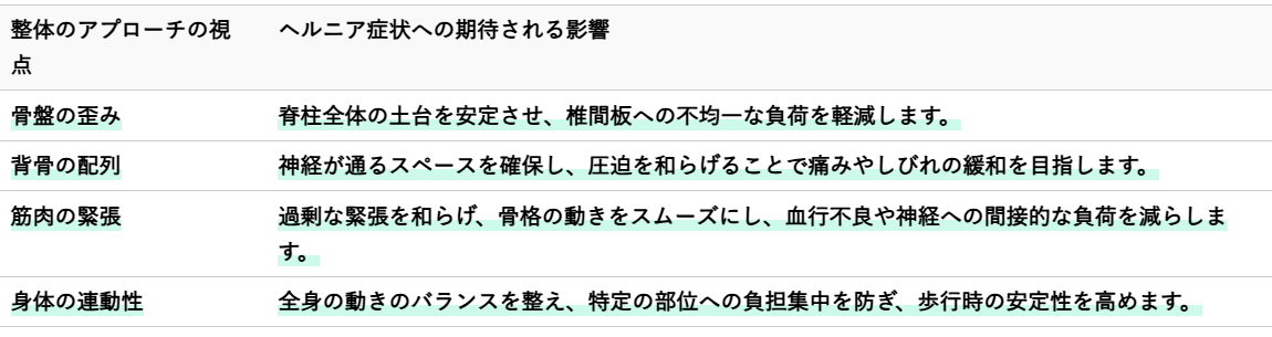 整体は、単に痛い部分を揉むだけではありません。ヘルニアの痛みの原因となっている体の状態を深く探り、根本から見直すことを目指します。その具体的なメカニズムについて見ていきましょう。