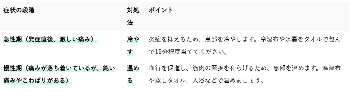 ヘルニアの痛みに対して、冷やすべきか温めるべきかは、症状の段階によって異なります。適切な方法を選ぶことで、痛みの緩和につながります。
